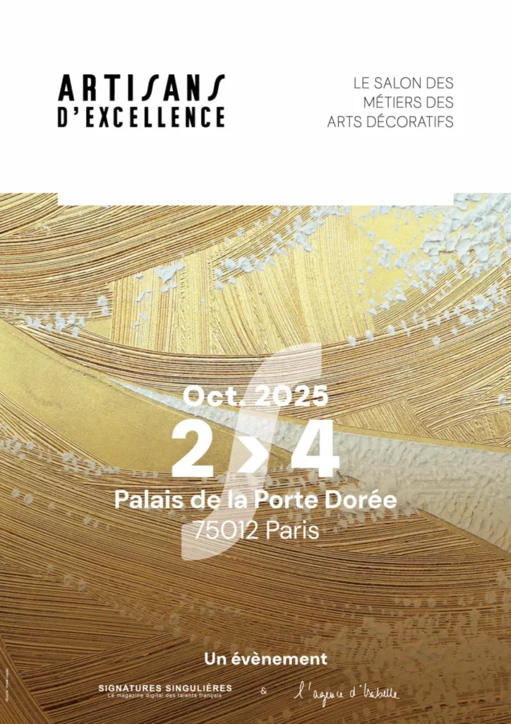 From October 2 to 4, 2025, the Palais de la Porte Dorée will host the second edition of Artisans d’Excellence, an unmissable event for lovers of decorative arts, interior design, and exceptional craftsmanship. After a first successful edition in 2024 – with more than 3,200 visitors in three days – this Parisian gathering confirms its ambition: to showcase the virtuosity of contemporary artisans and their dialogue with materials.
