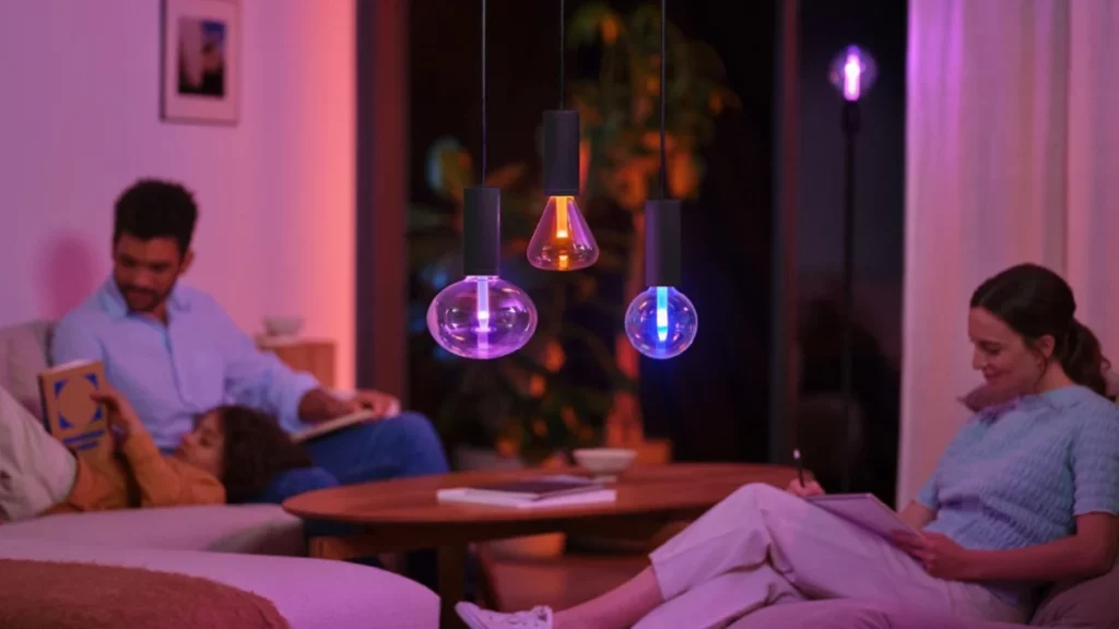 Ces éclairages connectés ont démocratisé la lumière intelligente. Leur design volontairement neutre permet une intégration harmonieuse dans tous les styles d’intérieur, tout en offrant 16 millions de nuances chromatiques programmables.